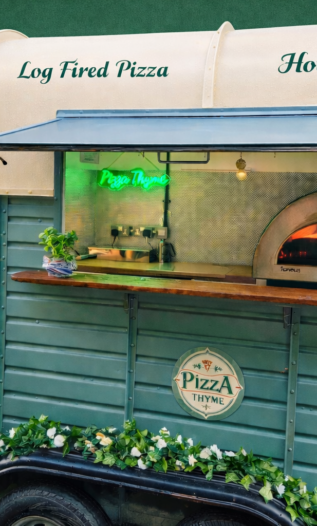 Pizza Thyme began with a love of traditional sourdough and genuine wood-fired cooking, combined with a passion for vintage style. Our converted horse box trailer breathes new life into pizza catering, providing a unique experience that elevates any event. We strive to deliver warmth, excellent flavours, and fresh, locally sourced produce in every pizza we serve.